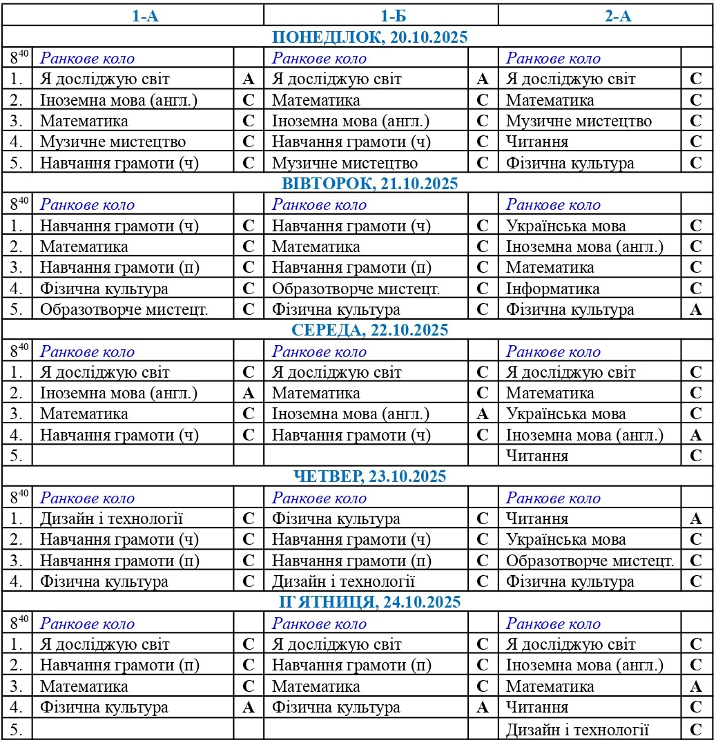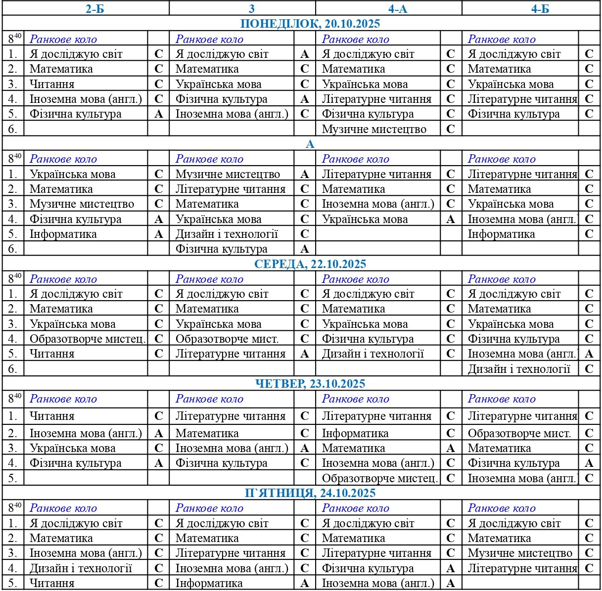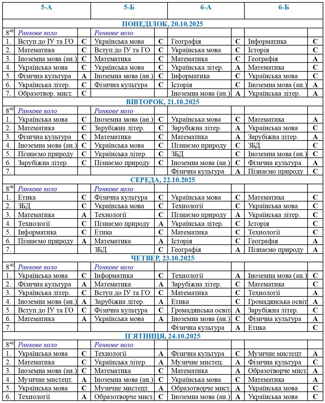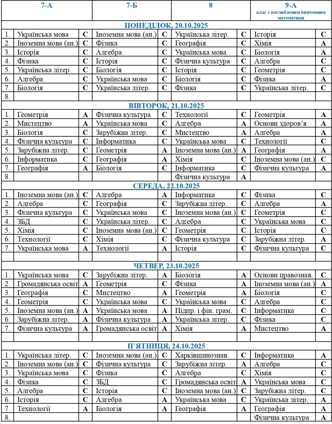 * Навчання відбувається в синхронному (онлайн) та асинхронному (взаємодія із затримкою в часі, коли при цьому застосовуються інтерактивні освітні платформи, електронна пошта, форуми, соціальні мережі тощо) режимах, що у розкладі позначено відповідною літерою С і А.