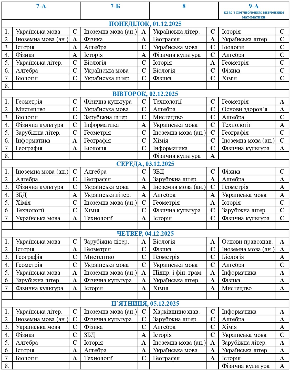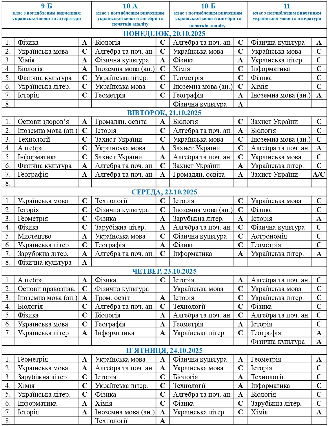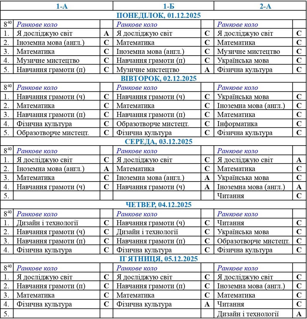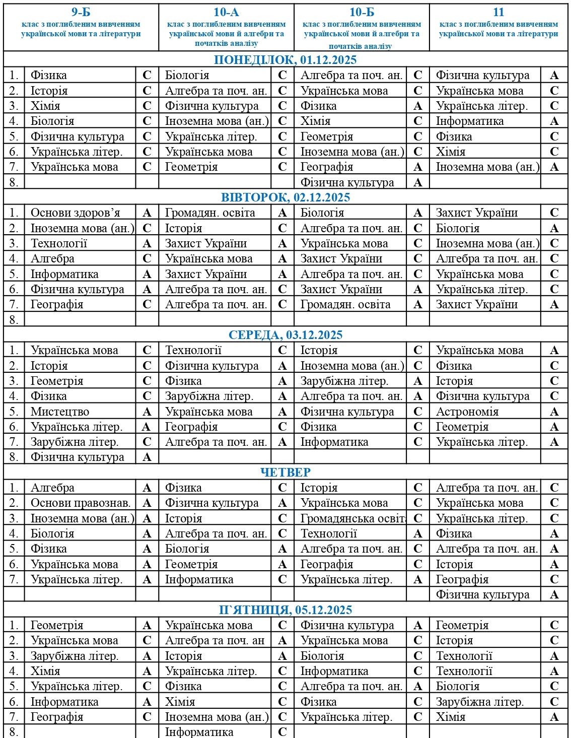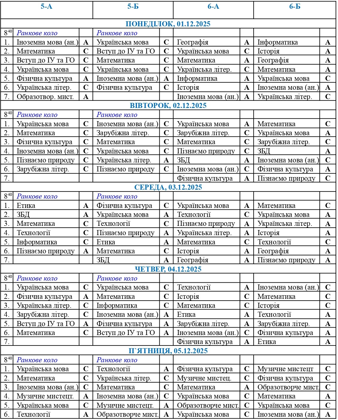 * Навчання відбувається в синхронному (онлайн) та асинхронному (взаємодія із затримкою в часі, коли при цьому застосовуються інтерактивні освітні платформи, електронна пошта, форуми, соціальні мережі тощо) режимах, що у розкладі позначено відповідною літерою С і А.