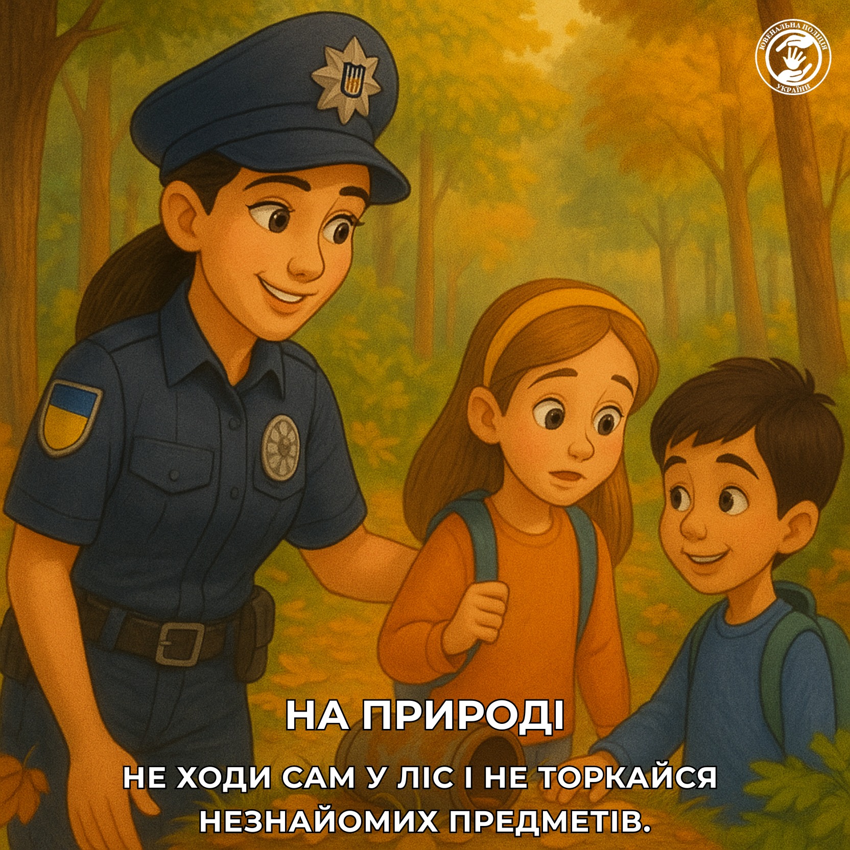 Не ходи до лісу сам, обов’язково повідомляй дорослих, куди йдеш. Не торкайся незнайомих предметів — це може бути небезпечно!