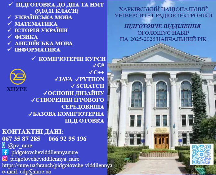 Підготовчі курси для учнів 5-11 класів від ХНУРЕ